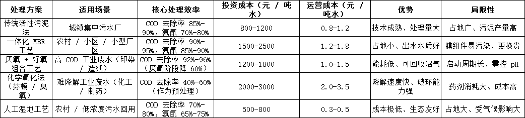 二、主流污水處理方案對比:按 “效果 - 成本” 選最優(yōu)